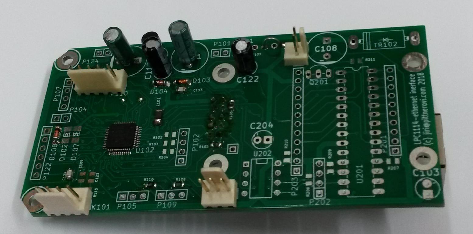 Here I present a design of a multipurpose board with LPC1114FBD48 connected via SPI to an Ethernet module based on ENC28J60.