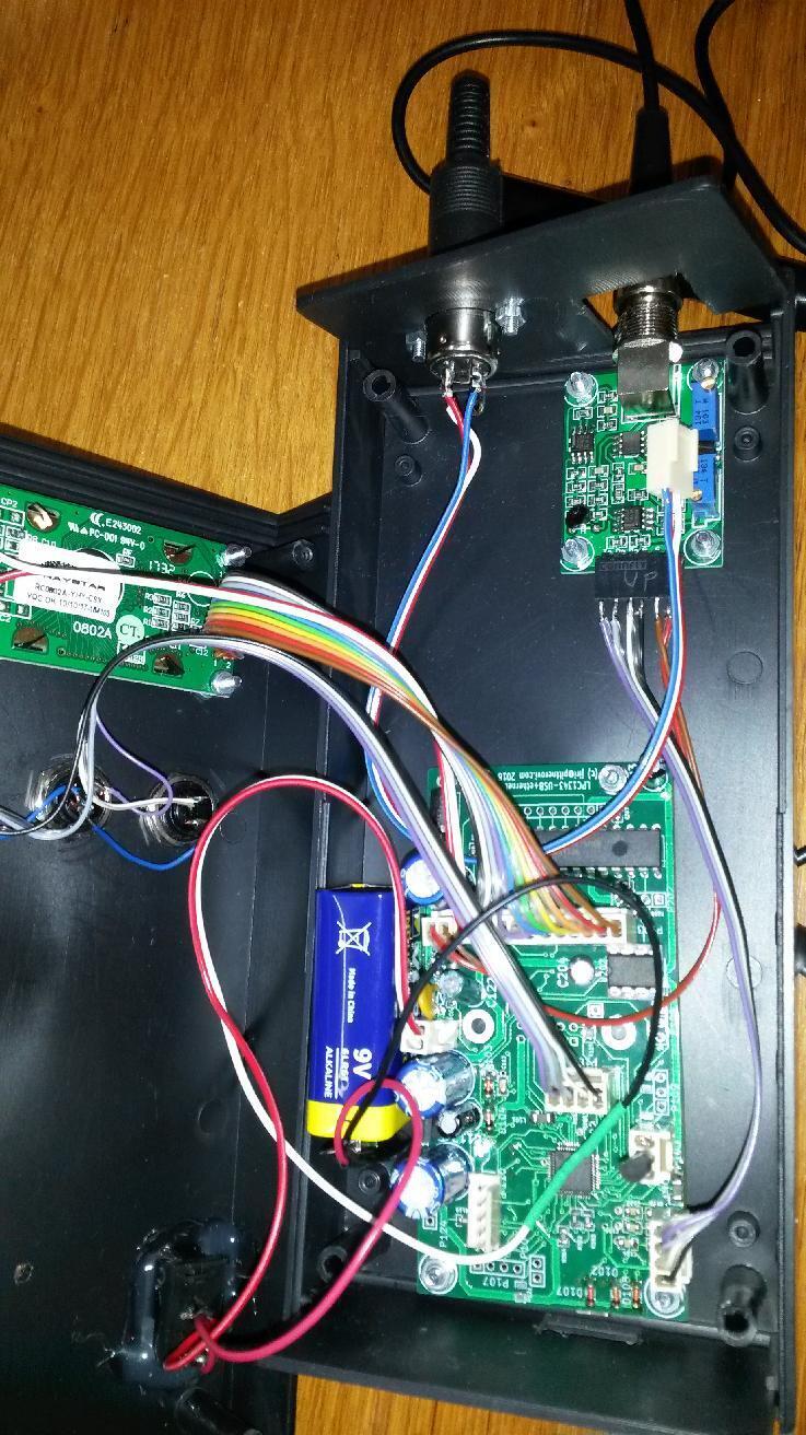 To interface the preamplifier with the ADC channel 3 on the board, I did populate resistor divisors by 18k and 33k resistors and tuned the trimmer