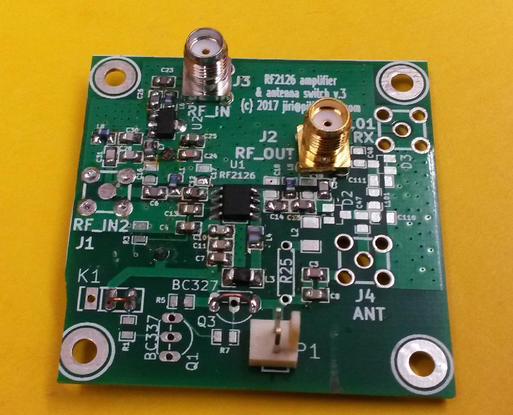 I have used HMC311ST89 as first stage amplifier, RF2126 as second stage, and HMC784MS8GE as an antenna switch.