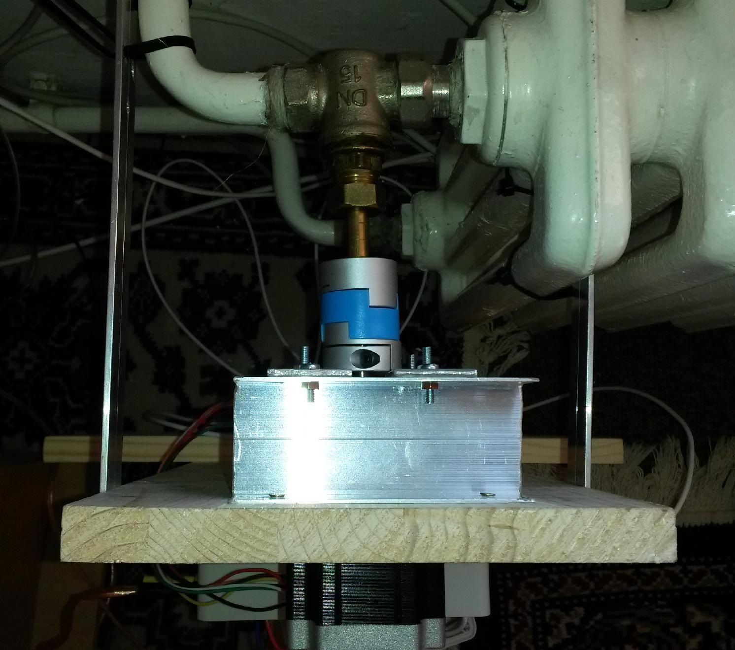 www.huco.com) from 8mm axis to 15mm, where a 3D-printed adapter to the square profile of the valve shaft is inserted.
